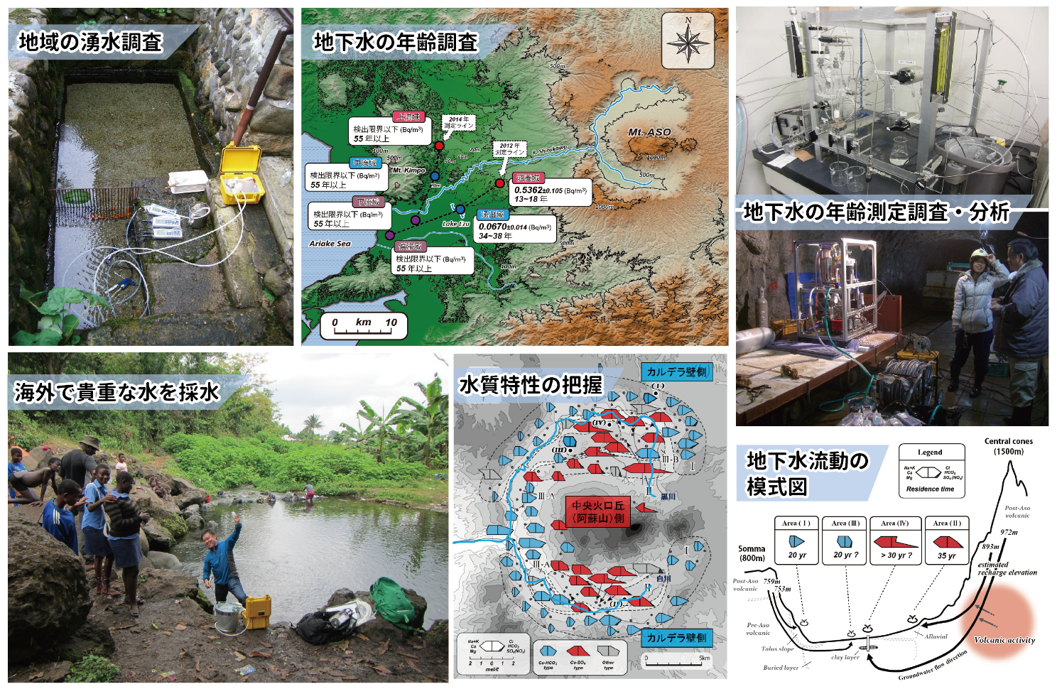 また、循環速度の解明のために地下水(湧水)の年齢の解明も行います。水の年齢を測定できる機関は全国的にもごく限られていますので、この手法は新たな知見をもたらしてくれるものと期待できまし、積極的に長崎大学から成果を発信していきます。